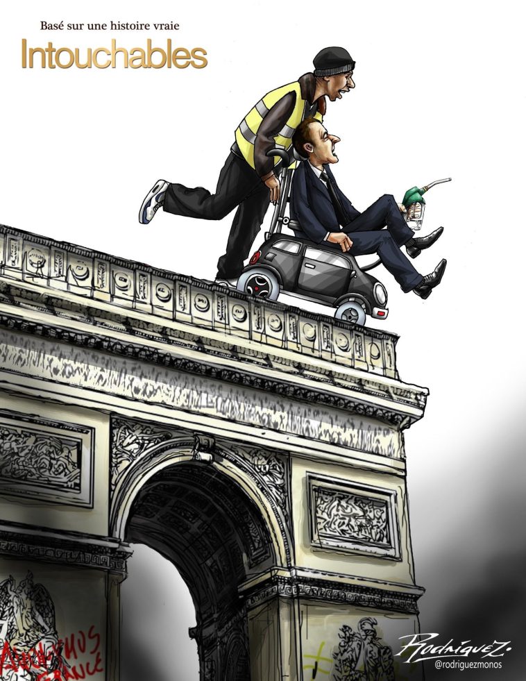 An action movie. A cartoon about France to suspend fuel price hike after ‘yellow vest’ protests. Editorial Cartoon by Antonio Rodriguez Garcia, from Mexico City, Mexico