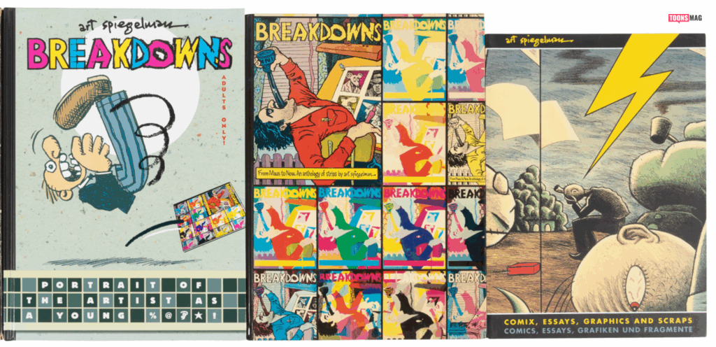 In the 2000s, while Spiegelman was producing In the Shadow of No Towers—another formally ambitious and politically charged graphic book reacting to the events of 9/11—Pantheon editor Dan Frank suggested republishing Breakdowns to show the early evolution of Spiegelman’s visual and thematic language. The new edition arrived in 2008 to critical acclaim and reestablished the volume as a crucial step in Spiegelman’s artistic evolution. It also sparked renewed scholarly interest in Spiegelman’s pre-Maus output and reinforced his status as a comics formalist ahead of his time.