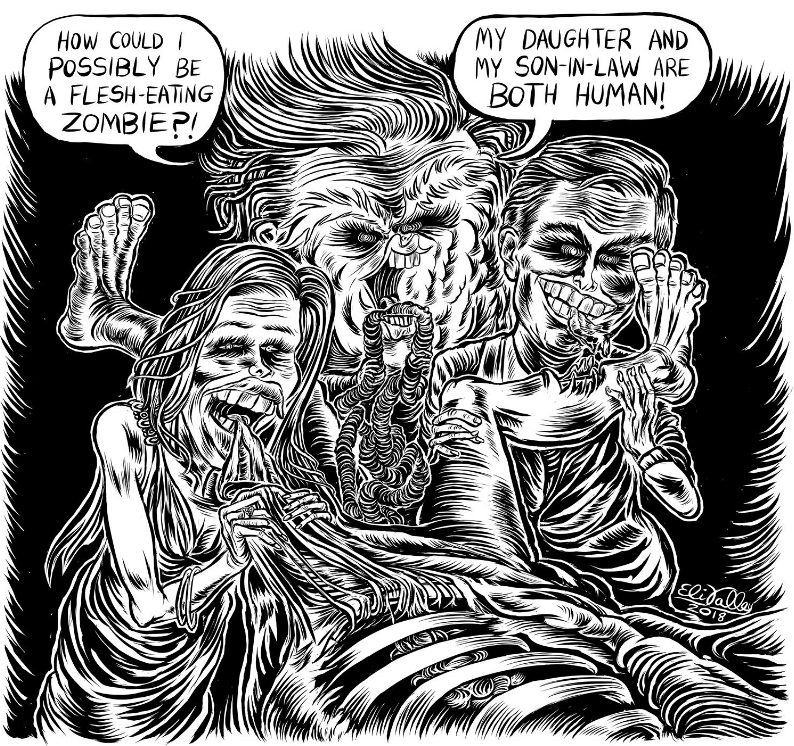 Poor cartoonists! They have to fear not just the prissiness of a James Bennet but also the wrath of tyrants. These days, the steep decline of newspapers offers another threat, that of unemployment. Yet the impulse to deploy images in the service of politics continues, even if staff jobs are scarce. A new generation of alternative cartoonists has emerged who are most often to be found online. Distinguished names include Matt Bors, Tom Tomorrow, Eli Valley, Pia Guerra, Matt Lubchansky, Ruben Bolling, Kasia Babis, and Jen Sorensen.