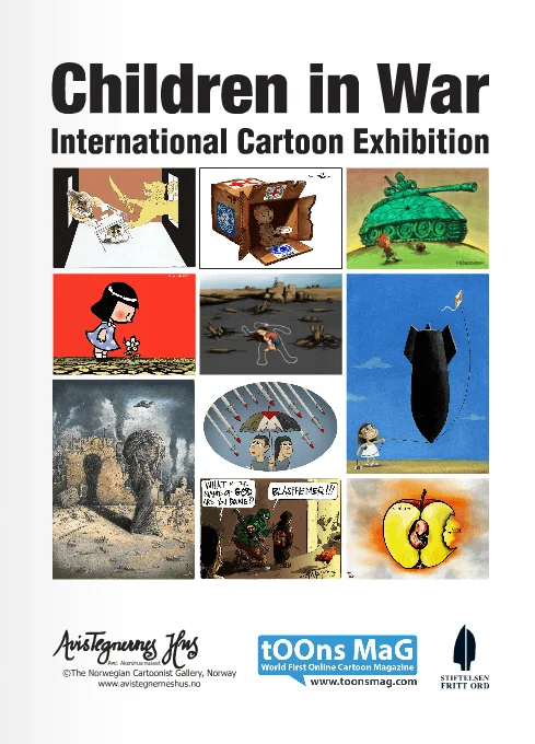 In 2015, Toons Mag organized the International Cartoon Contest and Exhibition “Children in War” to focus on the suffering of children in war and conflict areas, such as in Syria, Yemen, Afghanistan, Iraq. It was a moving exhibition, which was exhibited in multiple places in Norway and Sweden. One hundred and twenty-eight cartoonists participated in 51 different countries. On 10 September 2015, The exhibition was opened by Bishop Atle Sommerfeldt in Avistegnernes Hus, Drøbak. After the opening, it was exhibited in Oslo, Nesodden, Bergen, Stavanger, Haugesund, Kristiansand and in Norrköping in Sweden. The event was supported by The Norwegian Cartoonist Gallery and Fritt Ord.