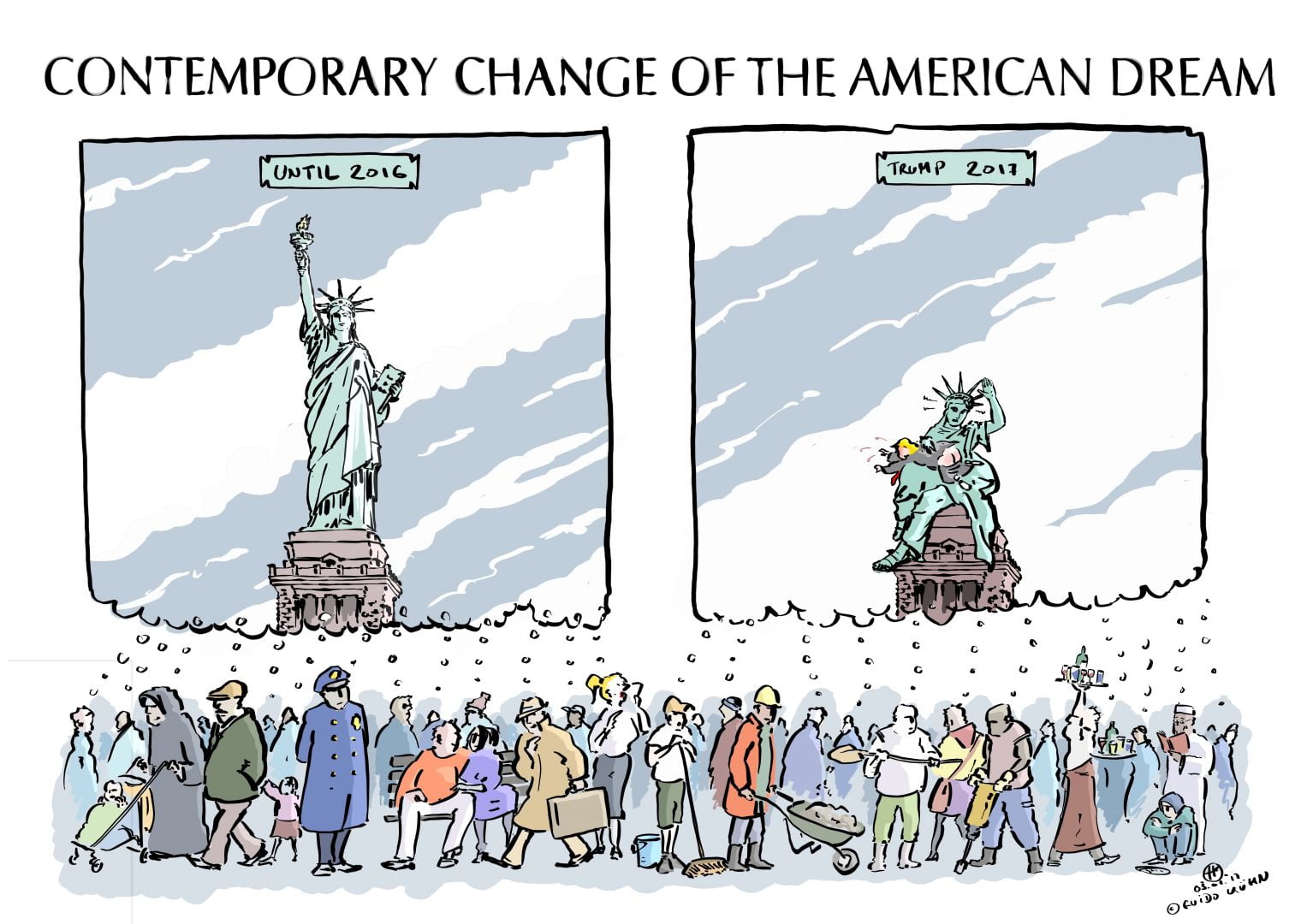 Contemporary Change the American Dream, Cartoon by Guido Kuehn, from Heidelberg & Schwäbisch Hall, Germany