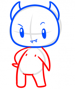 Define the shape of the head for your chibi devil, and then draw in the devil horns.