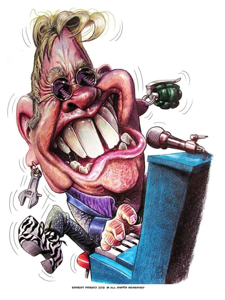 Elton John, Caricature by Ernesto Priego, from Barcelona, Spain.