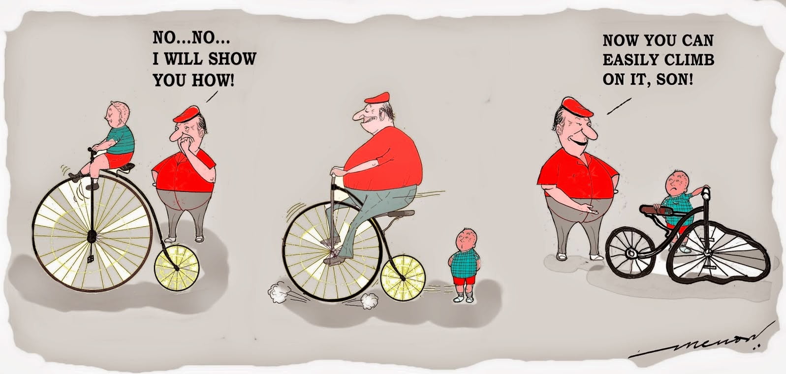 This cartoon humorously portrays a father attempting to help with a task, perhaps in a clumsy or exaggerated way. The scene may depict a dad trying to assist with household chores, homework, or parenting duties, but with humorous results that suggest well-intentioned but awkward efforts. The cartoon plays on the stereotype of dads sometimes struggling with everyday tasks, offering a lighthearted take on family dynamics. It highlights the importance of participation, even if the results are not perfect, and reflects the loving, albeit sometimes comedic, role of fathers in family life. See also: Cartoons from the time of Corona