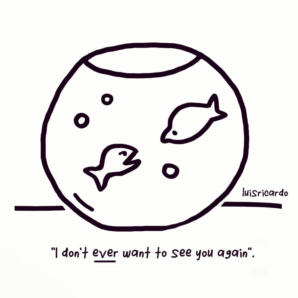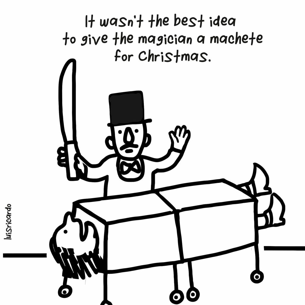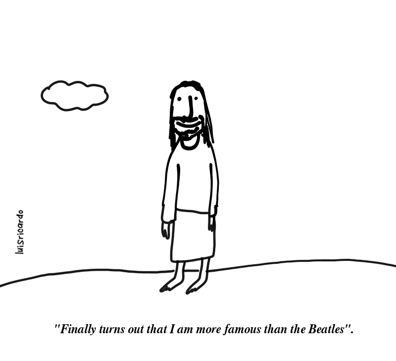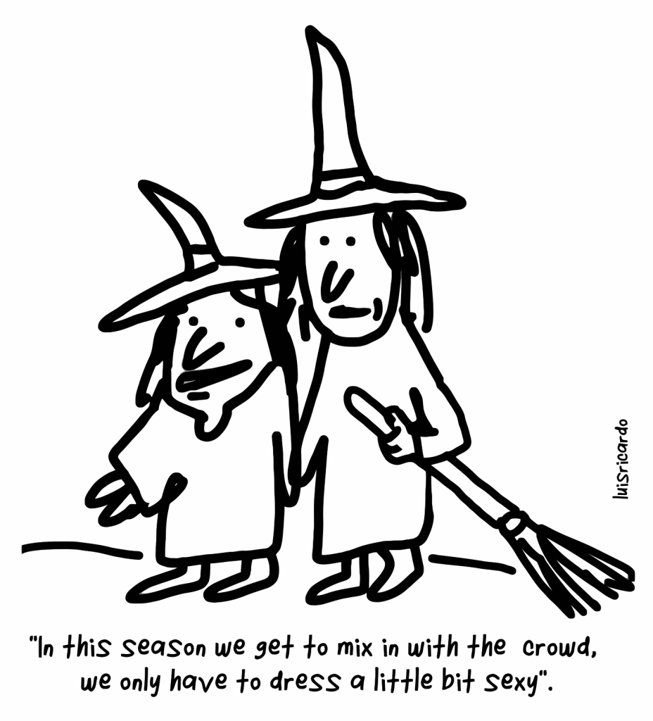 Some black and white, caption at the bottom, old-fashioned Cartoons. Cartoons by Luis Ricardo