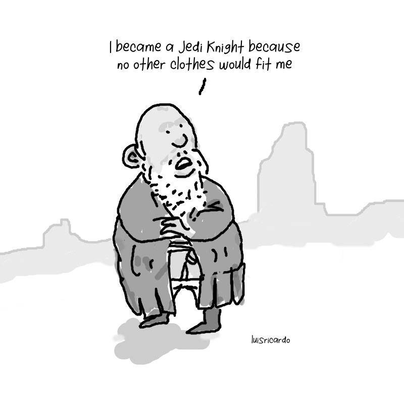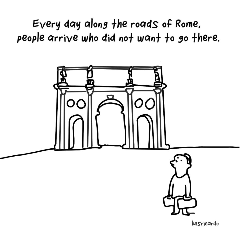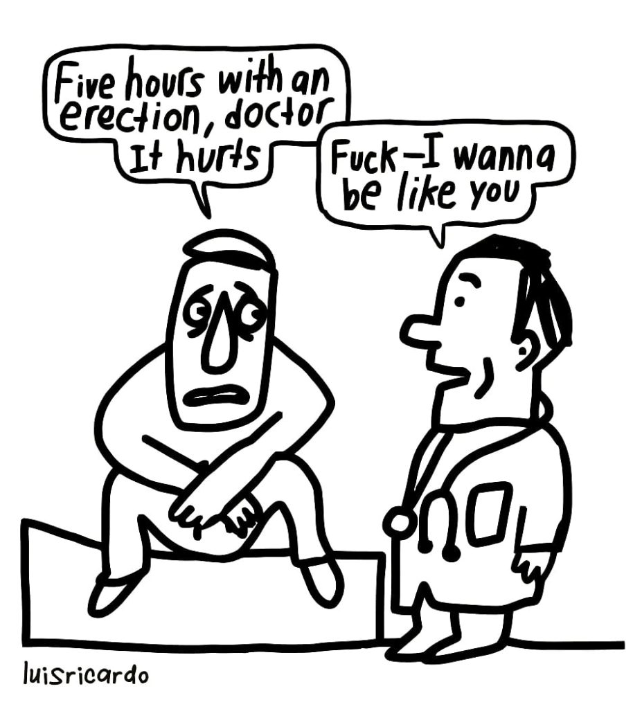 Some black and white, caption at the bottom, old-fashioned Cartoons. Cartoons by Luis Ricardo