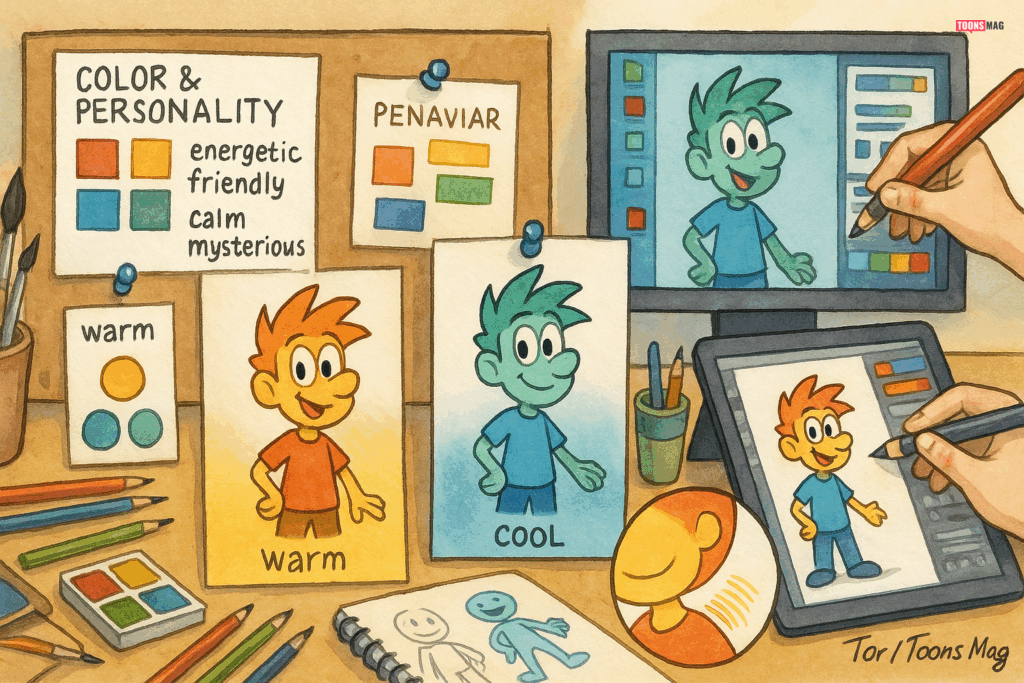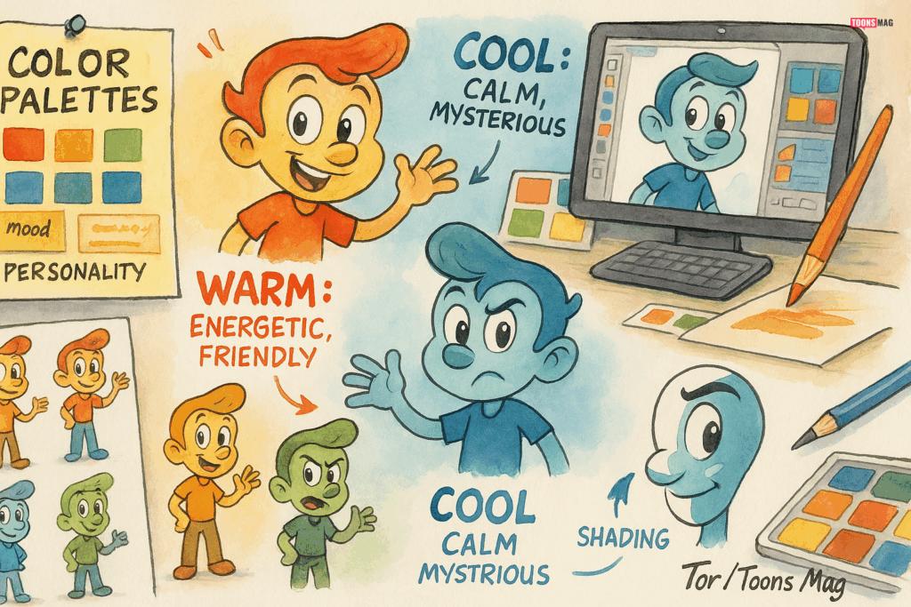 Color plays a big role in character design. Create a consistent palette that reflects your character’s personality. Warm colors like red and yellow can suggest energy and friendliness, while cool colors like blue and green can evoke calm or mystery.