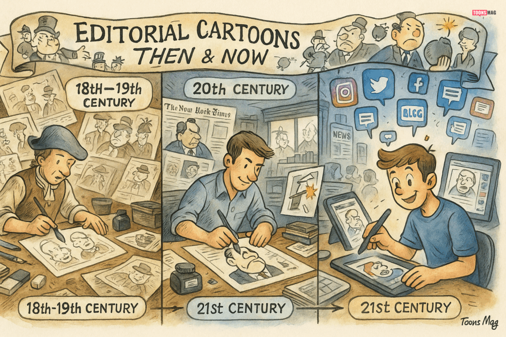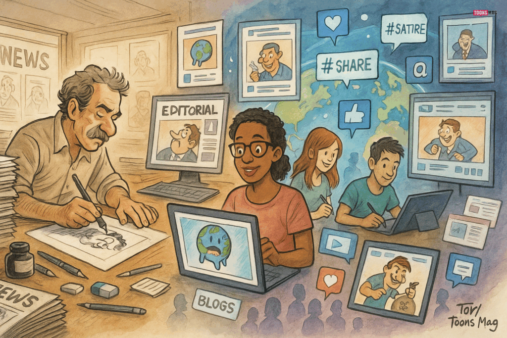 Today, the transition from print to digital media has expanded the reach of editorial cartoons. Online news sites, social media, and blogs allow cartoons to be shared globally within seconds. This shift has enabled cartoonists to influence a broader audience and have a more immediate impact on public discourse.