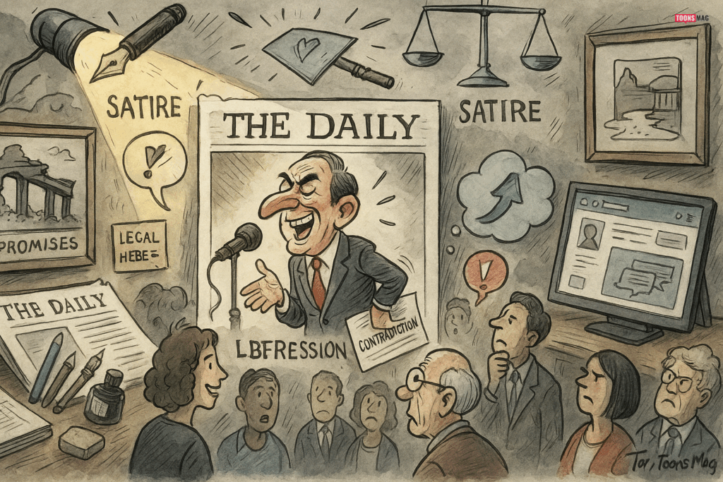Editorial cartoons often serve as a form of satire, using wit to expose hypocrisy and injustice. By lampooning political figures and decisions, cartoonists encourage the public to question the status quo. Satirical cartoons can reveal contradictions in government policy or expose the gap between political rhetoric and reality. This kind of visual commentary is a critical element in democratic societies, where the freedom to criticize is essential.