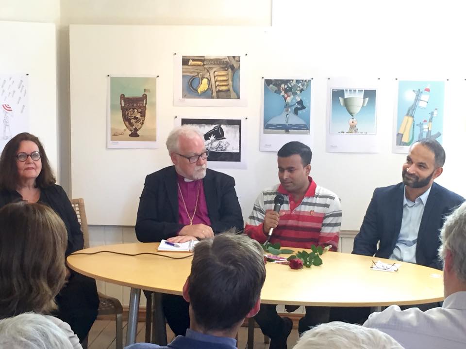 Opening of Children in War International Cartoon Exhibition, 10 September 2015 in Avistegnernes Hus, Drøbak, Norway