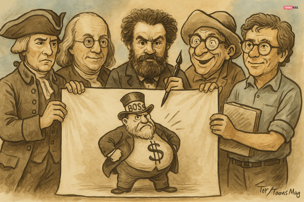 The power of cartoons to address corruption, power imbalances, and authoritarianism continued throughout the 20th century. From Nazi propaganda to Cold War critiques, cartoonists like Herblock and David Low illustrated the horrors of war, the absurdity of political ideologies, and the hypocrisy of governments. Today, cartoonists like those published in Toons Mag continue this tradition, using their work to challenge contemporary power structures and hold political leaders accountable for their actions.