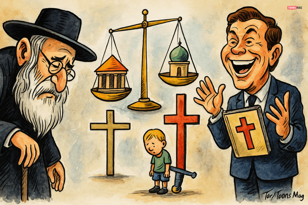 That said, Israeli cartoonists do satirize aspects of their own religious society. In Israel’s vibrant press, one can find cartoons critical of the ultra-Orthodox establishment or of religious hardliners. An Israeli cartoonist might draw politicians from religious parties as Kingmakers extorting concessions (e.g., depicted as black-hatted puppeteers) to critique their outsized influence. These are often accepted as legitimate commentary within Israel’s rough-and-tumble political discourse.