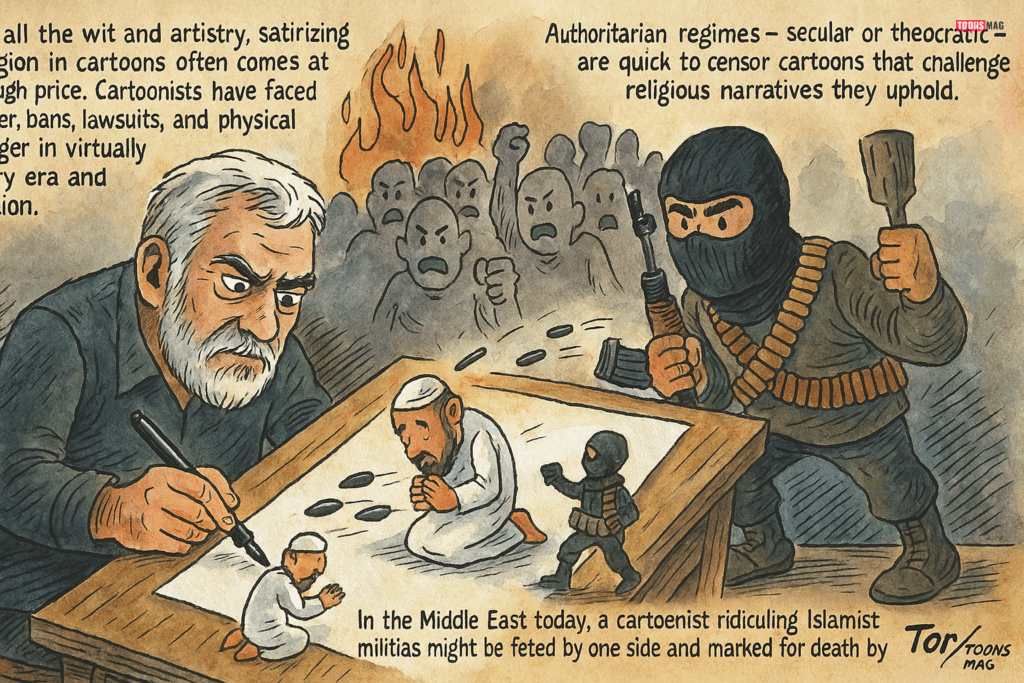 Editorial cartoonists have long used the sharp blade of satire to carve out commentary on religion. With a few strokes of the pen, they can provoke laughter, outrage, or deep reflection. Around the world, cartoonists have lampooned sacred figures, critiqued religious institutions, and spotlighted hypocrisy within various faiths – from Christianity and Islam to Hinduism, Judaism, Buddhism, and beyond. This article look explores how cartoons have addressed religious issues across history and cultures.