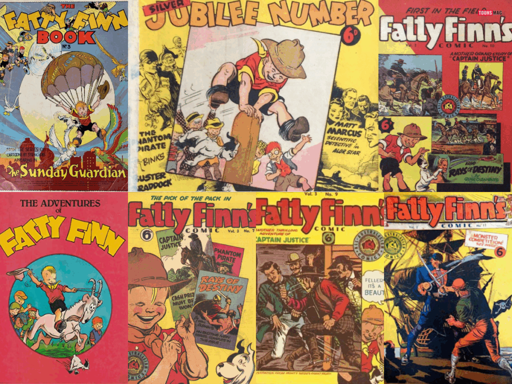 - Fatty Finn Weekly (1934–1935): A groundbreaking publication that marked one of the first locally produced, weekly all-Australian comic books. Created and edited by Nicholls, this comic book format featured Fatty Finn in serialized form, along with other original stories like Forest of Fear and contributions from local artists. It also featured a popular membership club and regular reader competitions, creating a strong community of young fans.