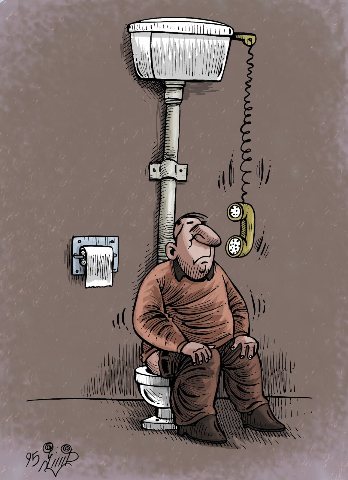 Telephone Conversation, Cartoon by F Dost Mohamad, Iran. See also: Telephone Call.