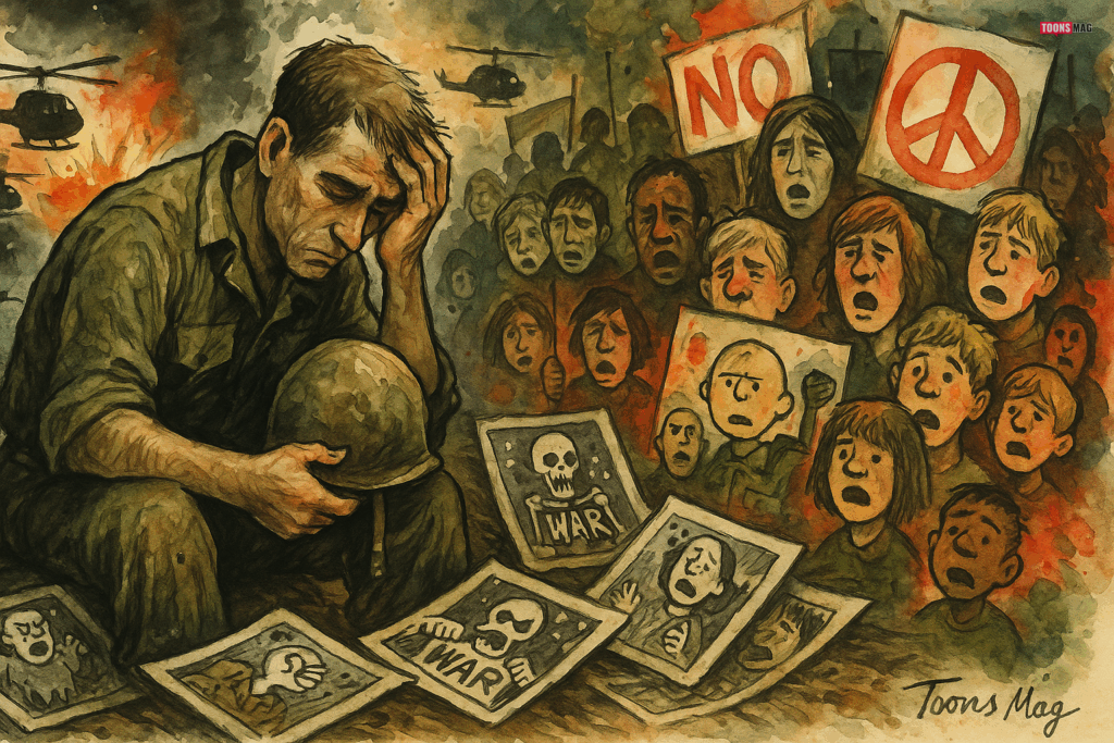 The Vietnam War spurred a wave of anti-war sentiment across the United States and beyond. Political cartoons became emblematic of the era’s dissent, using stark imagery to question the justification for conflict. Artists depicted the futility of war, the suffering of soldiers, and the disconnect between government decisions and the human cost of battle, thus influencing public opinion and protest movements.